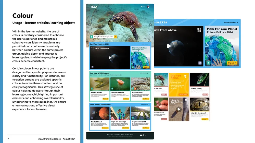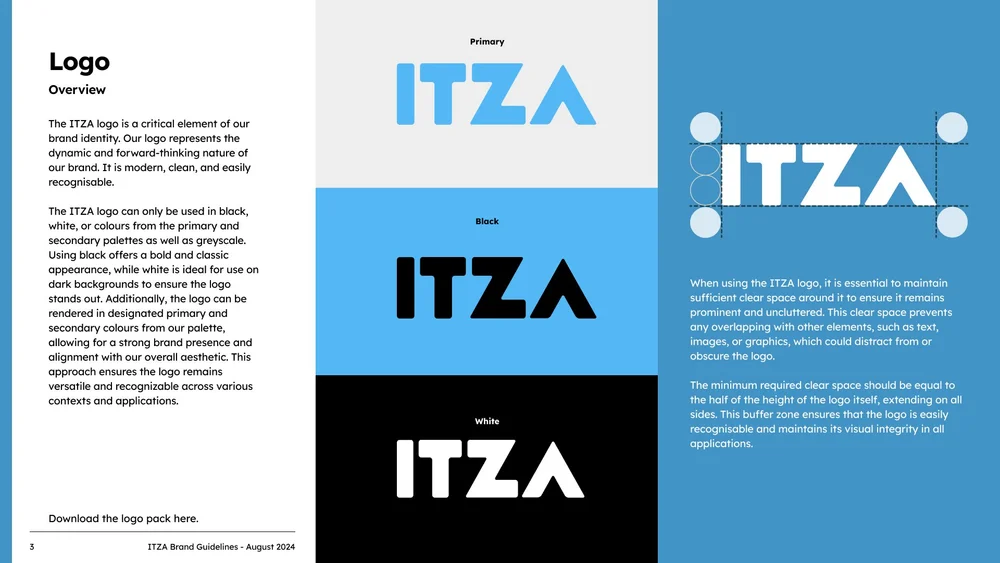 Using Figma, I developed the brand guidelines covering visual identity, typography, and colour schemes. Although these guidelines remained a work in progress due to my tenure concluding before their finalisation, they provided a solid foundation for maintaining consistency across company materials. This rewarding experience not only strengthened ITZA's brand presence but also laid the groundwork for future branding efforts, aligning with the company’s evolving vision and values.
