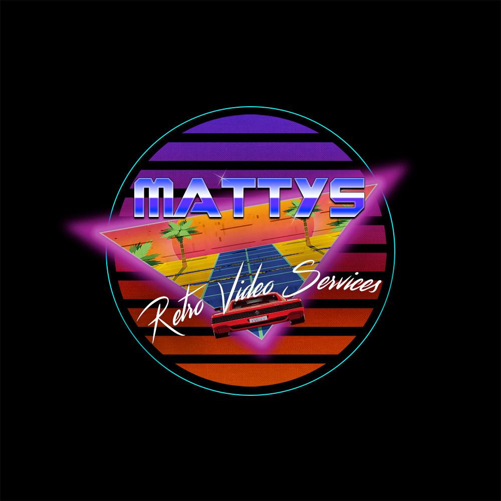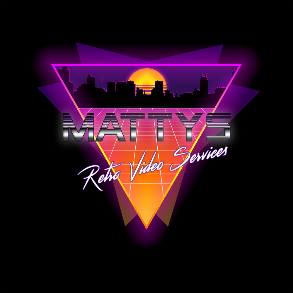 I set myself a logo design/branding brief for a Faux company 'MATTY'S Retro Video Services' and the designs were heavily influenced by the retro/synthwave art style.